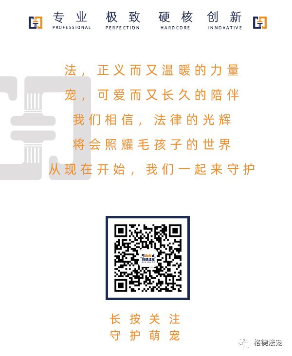 格德法宠,隶属于广东格德律师事务所,律所团队又称铲屎官家族,人均各有一只萌宠,因对宠物的喜爱,希望通过法律的方式为萌宠贡献点力量,呼吁并推动(伴侣)动物保护立法。