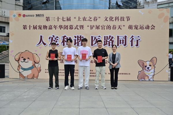 在岳阳广场,伴随着五月的和煦阳光,第三十七届“上农之春”文化科技节第十届宠物嘉年华闭幕式暨“铲屎官的春天”萌宠运动会盛大举行。动科系党政班子成员、岳阳街道团工委副书记、各系学生工作负责人、年级辅导员、团学骨干和学生代表以及热情的附近居民和接近1万的线上观众,共同见证了这一盛事的圆满落幕。