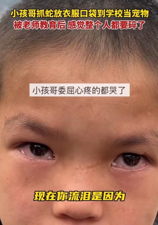 于是,老师严肃地对小孩哥说:“以后不要拿蛇当‘宠物’了,不然会有生命危险的。”小孩哥听了,似乎有些委屈,眼眶都红了。他哽咽着说:“可是,我觉得它好可怜,我把它打死了,觉得好可惜。”