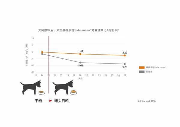 酵母细胞壁中的甘露聚糖和β-葡聚糖(1,3和1,6键),如赛福多糖Safmannan®,与狗体内可测量到的免疫球蛋白IgA的分泌增加有关。