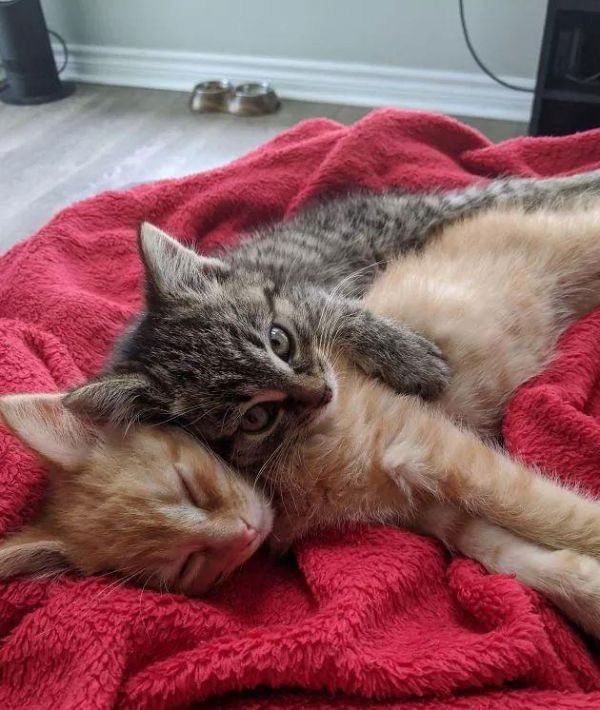 这两只猫是从不同地方领养的。一开始铲屎官还担心他们两个不会对付,但是过了一个星期,我发现我多虑了~