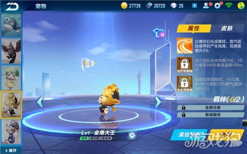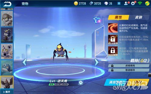 这个宠物强大之处,完全在于它所带来的速度增幅,虽然它第一阶段只有3%的速度加成,可是到了完全体解锁时,那就厉害了,在玩家腾空时,有22%的几率3秒钟内集气自动增加27%,并且最高速度还可以+1.8km/h,十分的使用,尤其是在空喷的时候,动力能够得到极大增长。