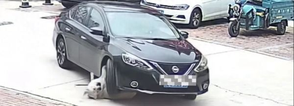 近日,山东烟台,有网友发布监控视频,自家的胖狗躺在路中间,一辆黑色的车子经过,没看到它,车子碾过狗狗把它压在车轮下。听到狗狗的一声惨叫,周围的人聚了过来,他们合力把车子搬了起来,狗狗被拖了出来。