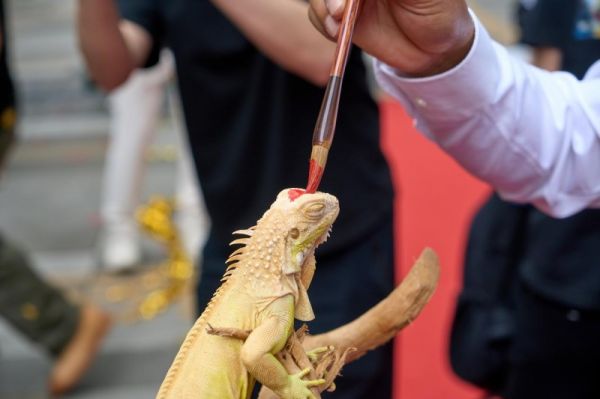 在剪彩礼毕之后,一只“瑞兽”鬣蜥被轻轻捧至台前,REPTIZOO家人在它的“天庭”——额头中央,点下朱砂。那一小点,仿佛让这只爬宠瞬间拥有了一双透视世界的眼睛,也象征着瑞皮大叔’店对“生命本色”的尊重。最后,金锤敲破祥瑞金蛋,当《御龙宝鉴》卷轴缓缓展开,“开业大吉”四字以金光闪耀,为这座新店的未来定下最朴实的祝愿。