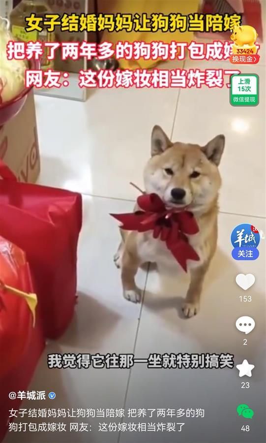 女儿出嫁妈妈把宠物狗也打包带上,网友:这份嫁妆相当炸裂了
