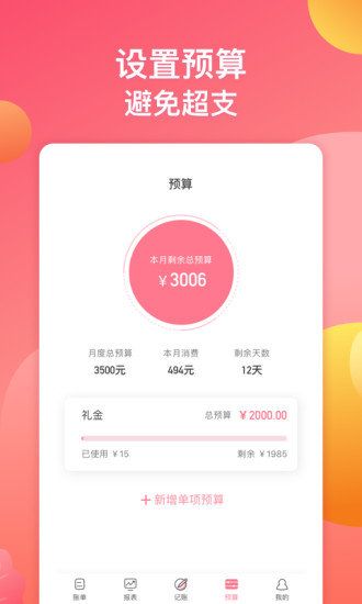 1.预算提醒,防止超支,守卫主人钱包