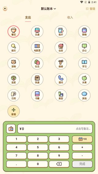 3、可以记录每天的支出和收入详细信息,有多种分类可供选择