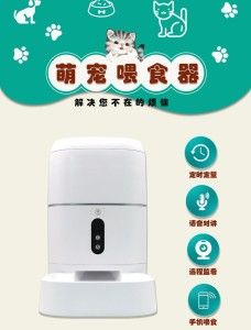 本款远程可视宠物喂食器自从投放市场以来深受消费者喜爱,极大的解决了外出家里宠物没人照顾的烦恼。本款喂食器有多种规格可以选择,欢迎咨询。