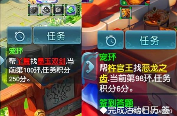 左边的玩家拥有着253点任务积分,是肯定可以获得150级的奖励的;右边的玩家只有11点积分,这样的积分不能够获得额外的奖励。如果大家是想要在宝宝环任务玩法中获得道具奖励,小编建议各位玩家向左边的这位玩家学习;如果大家仅仅只是想要提升召唤兽的修炼,小编建议各位玩家向右边的教育学习。