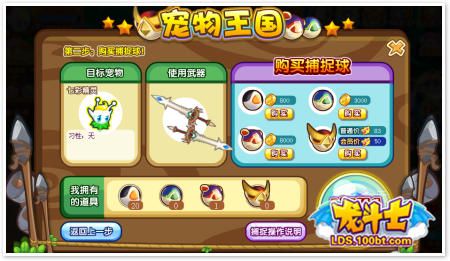 龙斗士有些宠物是可以通过捕捉获得的,我们可以到宠物仙境的【宠物王国】进行捕捉。