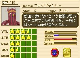 BP简单说就是星数*2,从上面我们就可以直接看出,这个火舞1级的标准BP为VTL 7 / STR 8 / DEX 4 / QUI 3 / MND 2,他们的和数就是24也就是星数之和乘以2. 而DP,就是BP以外的两点奖励数值,无论什么种族什么属性什么卡都一样是2点,所以我们就很容易可以得出结论,金卡12星的宠物满档DP= 24+2 =26.