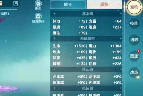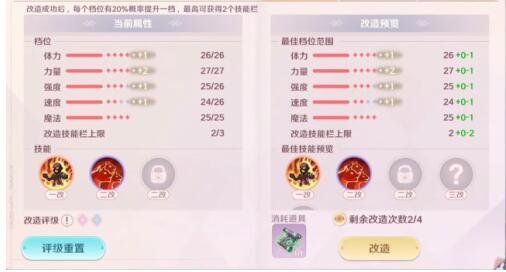 玩家可以通过改造将自己的宠物属性潜力和技能槽全部开满,从而实现满档。