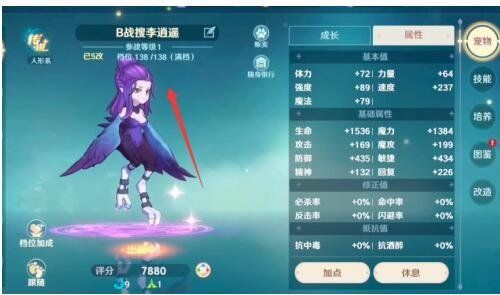 例如上图中的幻歌妖属于敏咒系宠物,我们在加点时选择将命中和敏捷的属性点加得更高。