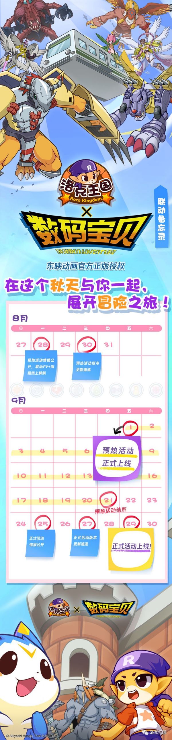 IT之家 8 月 29 日消息,早在今年 6 月,《洛克王国》官方宣布联动《数码宝贝》第一季动画里面的内容,包含主角团八大数码宝贝:战斗暴龙兽、钢铁加鲁鲁兽、伽楼达兽、超比多兽、花仙兽、祖顿兽、神圣天使兽、天女兽。