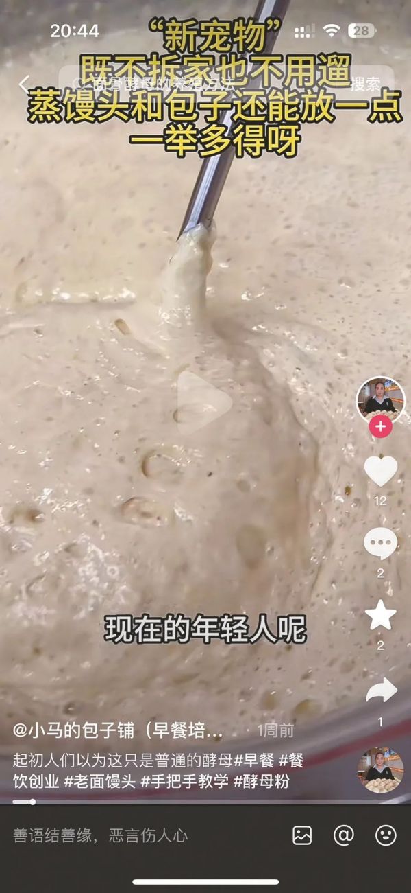 抖音用户“小马的包子铺(早餐培训)”发布的“面蛊”视频(截图)。