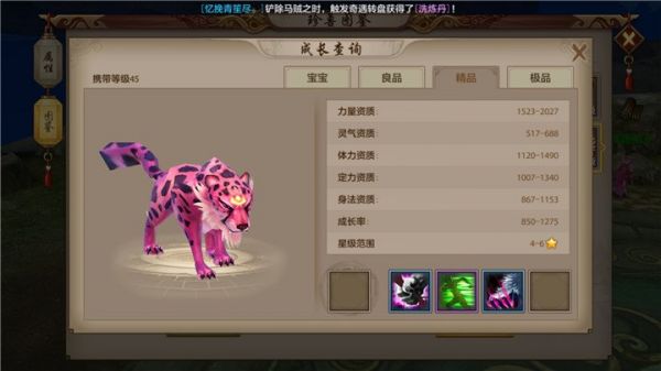 2.平衡型珍兽可以选择体力资质比较高的为最佳,附体之后可以增加很多的血上限。四个附体技能个人感觉有两个技能是必选的,那就是沸血和疾闪。增加主人的血上限和闪避属性。
