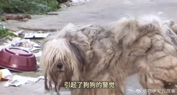 至此,狗狗就成为了有家可归无人照顾的流浪狗,从而狗狗身上的毛发越来越长,还打了结,脏乱不堪,慢慢的就成了如今的模样。