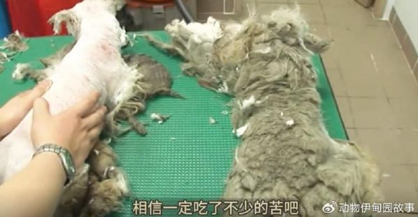 但由于狗狗身上的毛发太过厚重,医护人员着实费了一番手脚,才将狗狗身上的毛发,给剃除干净。