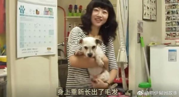 经过医护人员的治疗,一段时间后,狗狗顺利出院了。一个多月以后,狗狗痊愈,身上重新长出了毛发,看上去精神了不少。