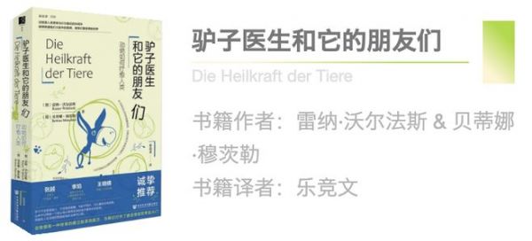 德国作为动物辅助治疗的发源地之一,对这一领域的从业者和动物都有着严格的认证与管理制度。《驴子医生和它的朋友们》作者,沃尔法特博士,曾任欧洲动物辅助治疗协会(ESAAT)主席,现为国际动物辅助治疗协会(ISAAT)副主席。穆茨勒女士则是动物辅助疗法专家,开办了自己的犬类训练学校并担任顾问,致力于培养狗狗与主人的亲密关系。他们共同领导位于萨斯巴赫瓦尔登的Ani.Motion弗赖堡动物辅助心理治疗研究所,持续在这个领域耕耘。