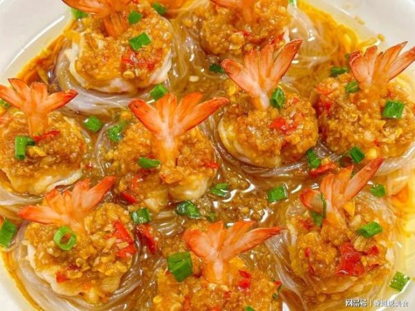 4、将酱汁均匀地铺在虾仁粉丝上,水开上锅蒸5分钟,然后关火焖2分钟。最后取出来,撒上葱花,泼上热油激发出香味即可。