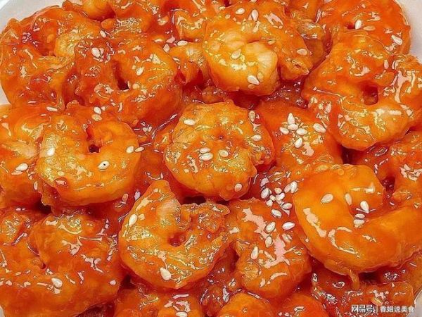 4、将糖醋汁放入锅中,煮开后再放入虾仁翻炒,炒至酱汁浓稠,撒上白芝麻即可出锅。