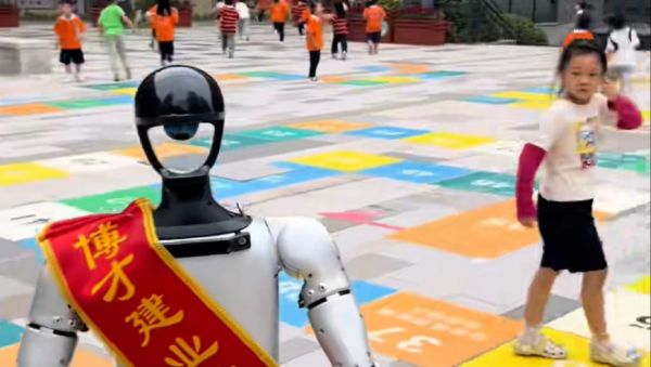 上课铃声响起,机器人也不由自主往教室跑
