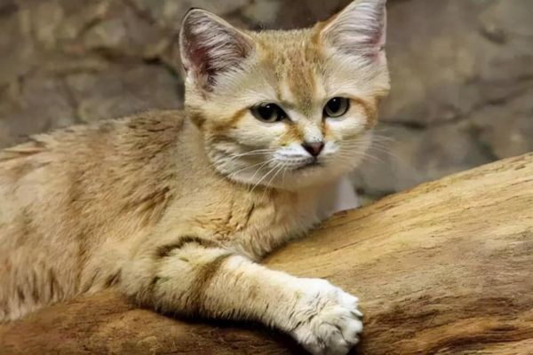 沙丘猫,一种在极端环境下可以存活的猫科动物,它们体型很小,体重不过7斤,它们外表虽然很萌,但其实攻击力和爆发力都很强,主要以老鼠、蜥蜴和昆虫为食。因为现在数量稀少,几近灭绝,所以它们被禁止饲养。