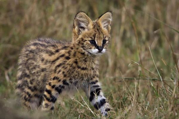 薮猫的主要栖息地是非洲大草原,它们四肢和躯干修长,像一只mini版的猎豹,外表很狂野,皮毛黄色且具黑斑,由于栖息地的破坏和偷猎而减少,在我国属于二级保护动物,是被禁止饲养的,要是被抓到了,可能会牢底坐穿!