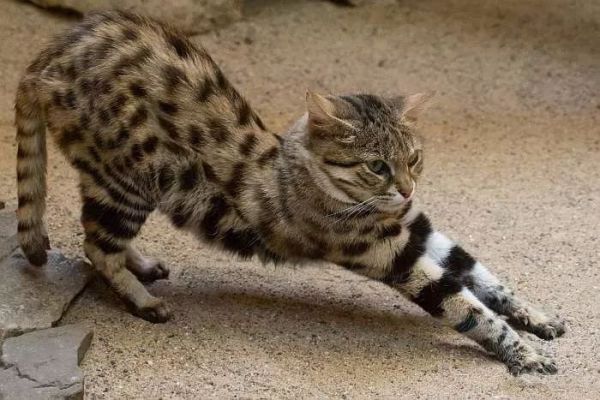 黑足猫的名字来源于它们的足底有黑色的标记,是野生猫科动物里,体积最小的,但是攻击力却很强,能制服比它们体型大三倍的小羊,这种猫并不好惹。这种猫生存环境艰难,加上数量稀少,是易危动物。不能随意饲养的。