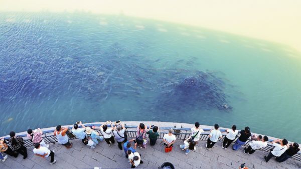 “特意坐高铁来打卡,没想到生态好得超出预期!”重庆游客许敏正撕着馒头投喂鱼群,她指着水面说道,“这里‘宠物鱼’都是野生的,比公园里的观赏鱼灵动多了。”