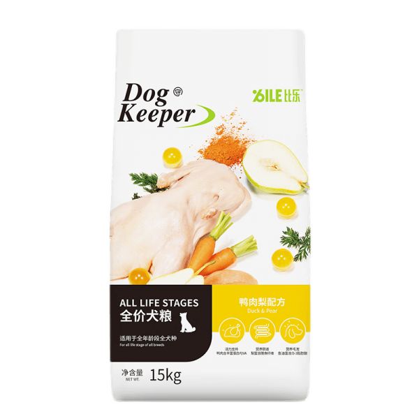最后,我们来看看比乐的这款鸭肉梨成幼犬通用狗粮。它的36%鸭肉含量和≥15种多元食材,确保了幼犬在成长过程中所需的丰富营养。无论是小型犬还是大型犬,都能在这款狗粮中获得所需的营养支持。