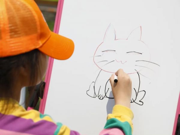 长达4米的“百爪征集”打卡墙成了全场最受欢迎的互动打卡点,“汪星人”“喵星人”们和主人一起留下了形态各异的爪印足迹。小朋友们在手绘板上即兴创作,稚嫩的笔触完成的创意手绘与祝福语,与“爪印”共同组成了“萌宠地图”。