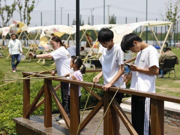 盛夏将至,龙虾先行。小朋友们手持特制钓竿,在家长的指导下与小龙虾展开“博弈”,在寓教于乐中感受乡村生活的趣味。