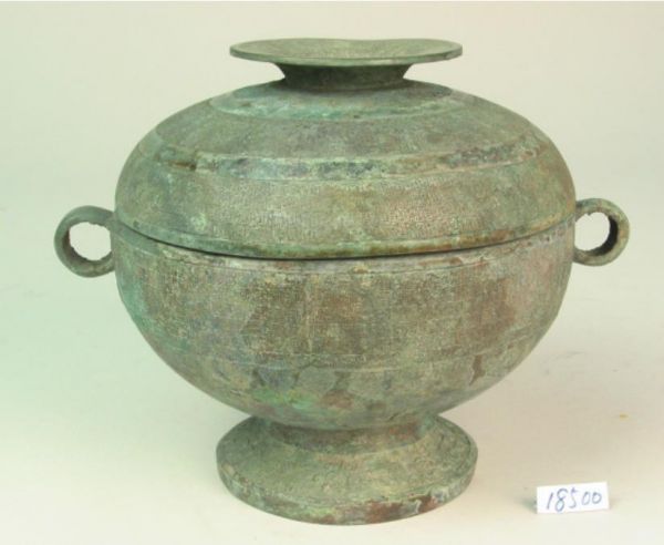 本次展览上就可以看到不少这类典型文物,如战国时期的圈盖蟠虺纹大鼎,为青铜铸造,圆形三足,二附耳,口沿下为方式蟠虺纹带,下有蟠虺垂叶,腹部凸起纹一道,足面有蟠虺组成的兽面纹,上有圈式把手平盖,盖上亦有纹及蟠虺带纹,器及盖均有后刻的铭文;还有战国时期的青铜器蟠虺纹铜豆,为圆体,腹下收,高圈足,上有盖,腹两侧有环耳,全器纹饰,分作七部分,饰有细密的蟠虺纹。