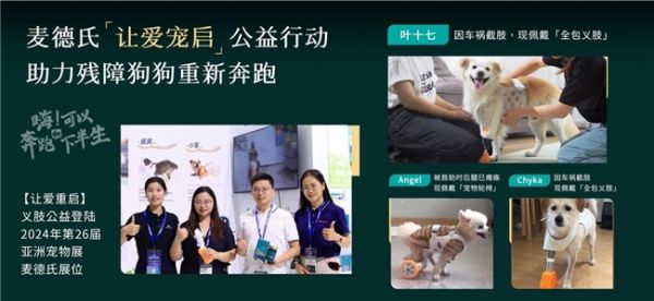 作为一家具有高度社会责任感的企业,麦德氏始终致力于用爱回馈社会。近年来,麦德氏先后为导盲犬基地、河南水灾动物基地捐赠产品,帮助特殊犬只群体改善健康。此外,麦德氏还为肢体残障狗狗和搜救犬定制义肢,用实际行动践行“爱宠如己”的品牌理念。