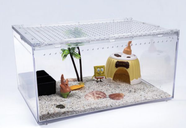 ✅饲养箱:幼体守宫的饲养环境用亚力克的爬宠饲养箱就可以了,淘宝一般就有,这种一般比较小(10*8*7),价格控制在10块钱以内(里边需要自己布置),当然更高级一点的可能就更贵,成体需要大一点,也可以直接到位买(60×30×30cm)。一般守宫喝露水,所以买一个潜水盆配套就可以了,一个几块。