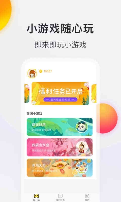 除了玩小游戏外,完成任务还可以获得更多金币奖励哦!