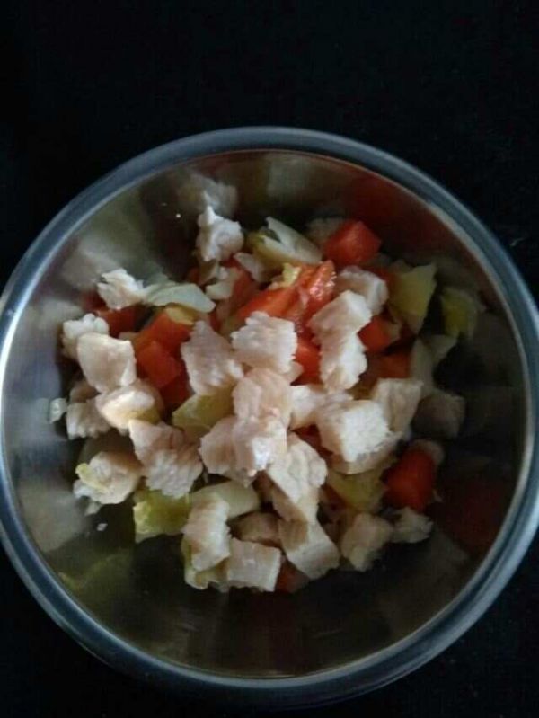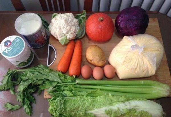 配比的蔬菜和肉类可随意搭配几样,但不要选择猪肉,脂肪含量太高,狗狗容易肥胖生病!搅拌所有食材时不要加水,因为蔬菜里会有很多水分出来,太稀了就会不成型了。
