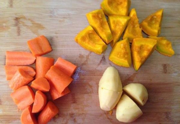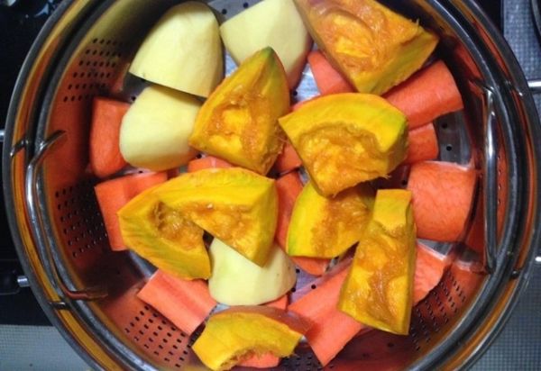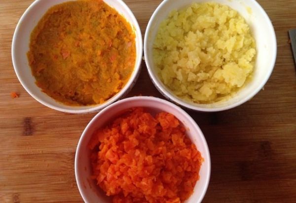 蒸好的胡萝卜、土豆、南瓜捣成泥状