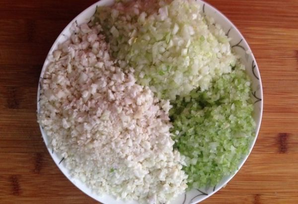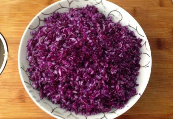 紫甘兰切碎,越碎越好,如果用机器打碎更方便了。我是完全用刀一下下剁出来的。