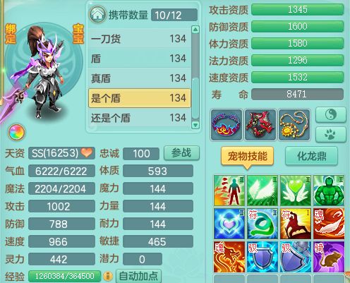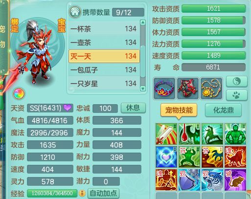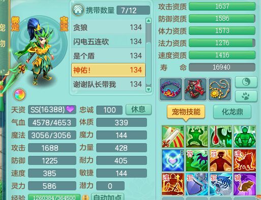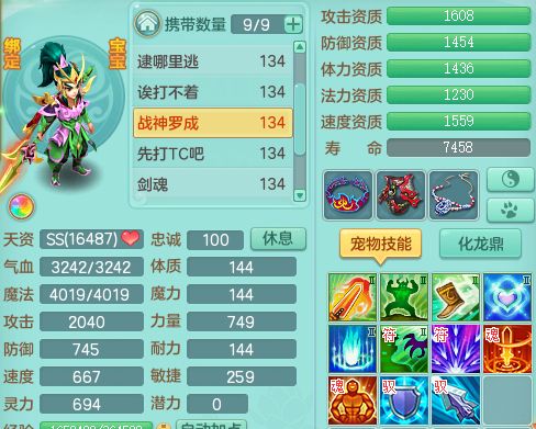 满进修加饰物的情况下罗成的攻资是能够达到一个1645攻资的,相当于飞升宠物剑魂。