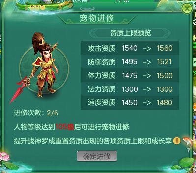 罗成总共能够进修6次而进修的次数也是根据等级来决定的,前面的两次进修是可以通过购买战神冠、黄金甲进行进修。后面还有4次能进修的机会,进修的条件分别是对应的等级段为105、115、125、飞升125,还有相应的神兽灵10、10、15、15。