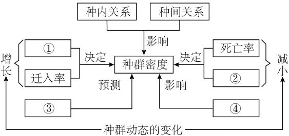 (5)下图为三个种群的年龄组成曲线图,在下列三个种群中种群密度将减小的是______。