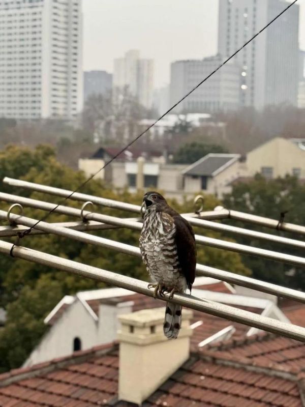 “窗外拍到的,不知是雀鹰还是什么小鸟,请专业人士鉴定”