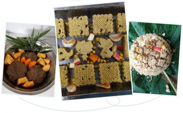 馅料是月饼的精髓,各种口味齐全,苹果、香梨、番茄、黄瓜、胡萝卜、橙子、南瓜、花生、核桃,还有果酱和蜂蜜,以及熟牛肉、面包虫等重口味的。