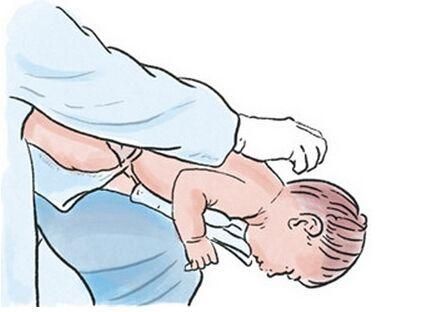 大人坐在椅子上,宝宝俯卧在双腿上,上胸部和头部低垂着,家长用一手固定孩子,另一手有节奏地拍击其两肩胛间的背部,使气道内的阻塞物脱离原位而咳出。必要的时候要进行人工呼吸或心外按摩。