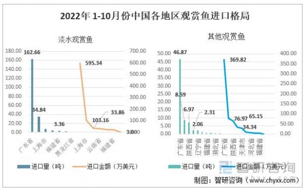 2021年中国各地区观赏鱼进口格局