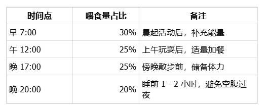 为了让家长们轻松执行,我们设计了一份「生物钟同步」喂食表,将每日总食量按活动规律分配,具体如下: