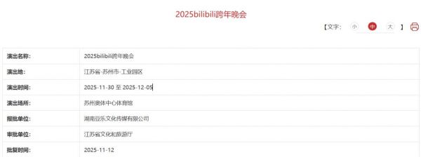 2025哔哩哔哩跨年晚会苏州录制已经审批通过!